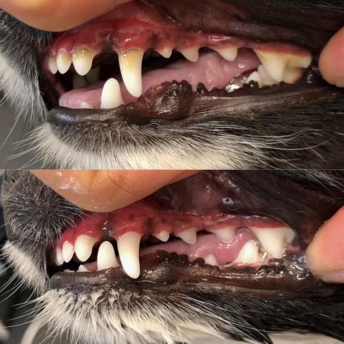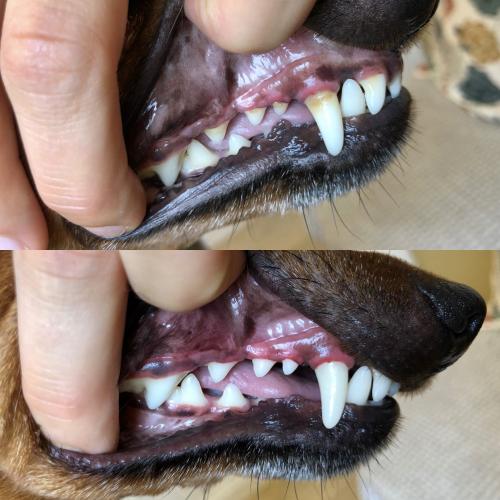 Vänj hunden vid att det är ok att pilla med munnen. Träna på att lyfta läpparna och att hunden sitter still. Träna gärna in ett kommando, exempelvis "stilla".