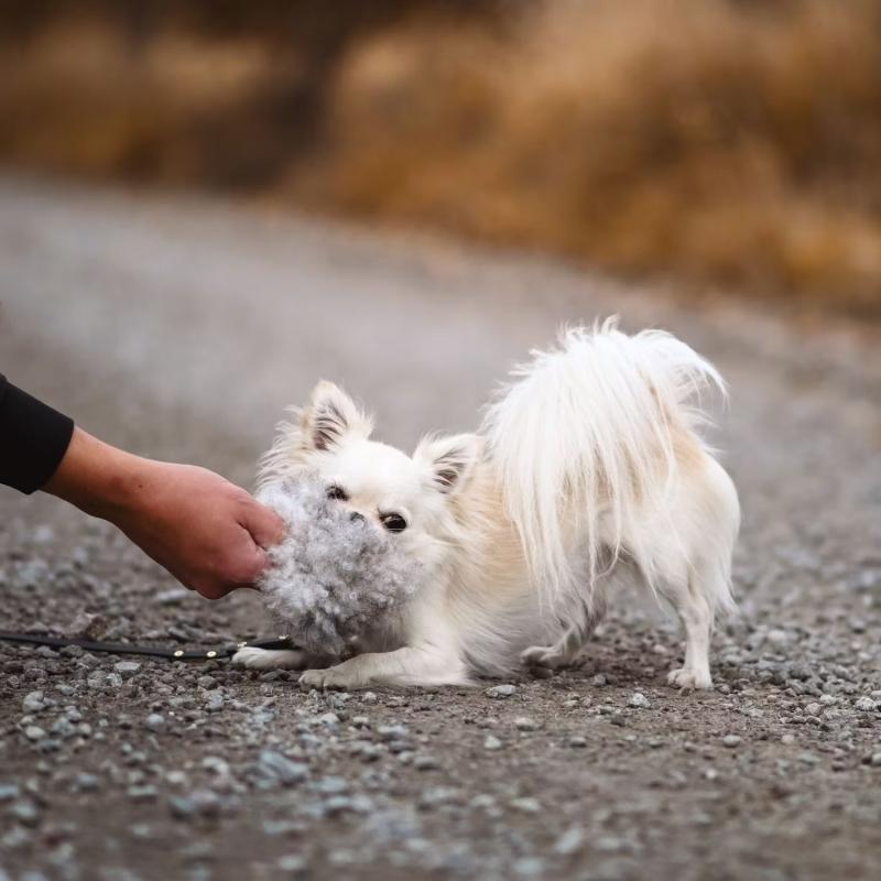 Hundleksak - Fårskinnsboll med fyllning av lätt tvättad fårull och squeak pip!