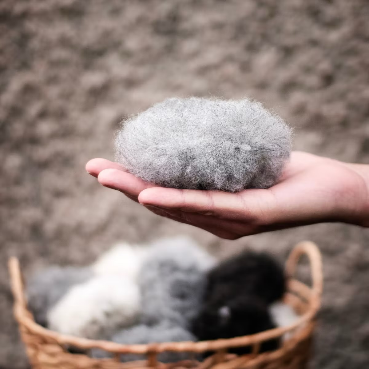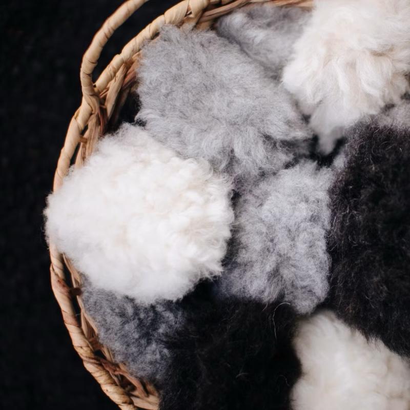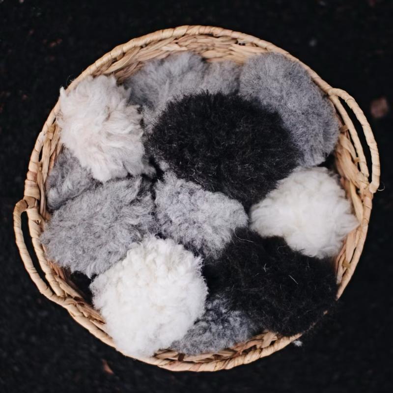 Handtvätt vid behov, kamma fårskinnsbollen med kam eller karda för att återfå fluffet och den runda formen.