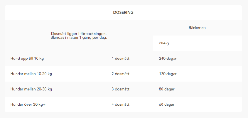 Varningstext: Till hundar med känslig mage så rekommenderar vi att man startar med en låg dos och sakta ökar upp. Är din hund allergisk mot skaldjur så rekommenderas inte denna produkt.