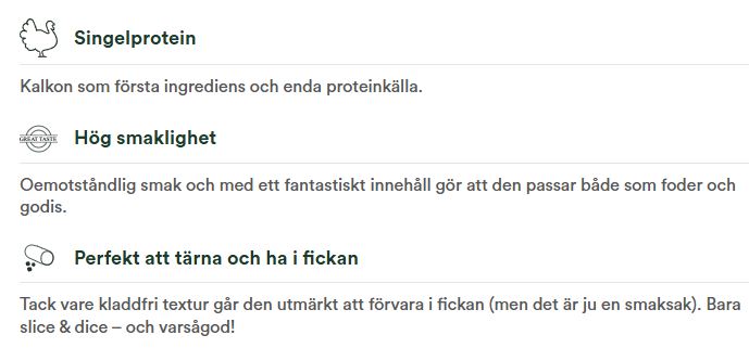 Köttiga, spannmålsfria och Monstergoda korvar. Serveras med fördel som helfoder, men funkar kanske allra bäst som belöningsgodis? Tack vare kladdfri textur går den utmärkt att förvara i fickan (men det är ju en smaksak). Bara slice & dice – och varsågod!