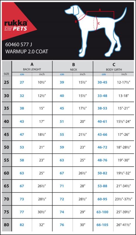 Rukka Warmup 2.0 Hundtäcke har en hög krage och en extra rörkrage i trikot som ger extra skydd för halsen och öronen. Det fodrade bröststycket och magen håller kylan och vinden borta, medan de elastiska benöglorna ger din hund full rörelsefrihet. Täcket är justerbart vid midjan och krage för en perfekt passform.