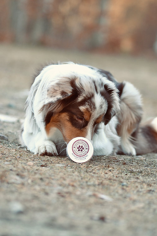 Utöver dessa 12 örter tillsätts en noggrant utvald ekologisk olivolja och en klick bivax. Thats it! Många örter i salvan gör den mångsidig och är mer än bara en Tassalva.. Helt unik på marknaden & 100% naturligt för din hund!