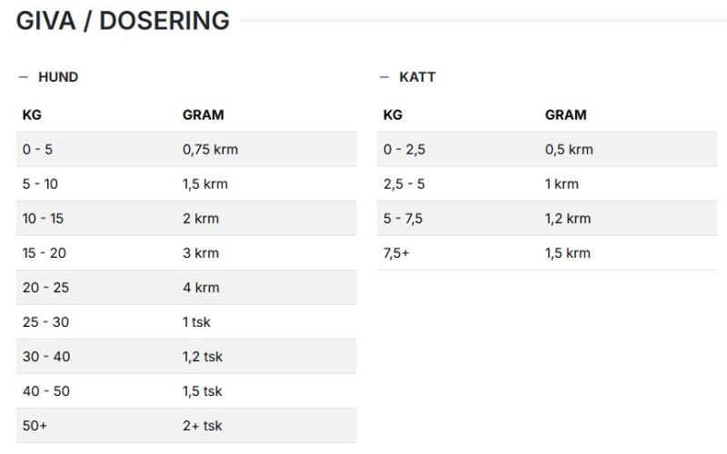 För de som lagar egen mat ska Glukosamin plus blandas ner när maten har svalnat, höga temperaturer kan bryta ner/skada näringsnivåerna.